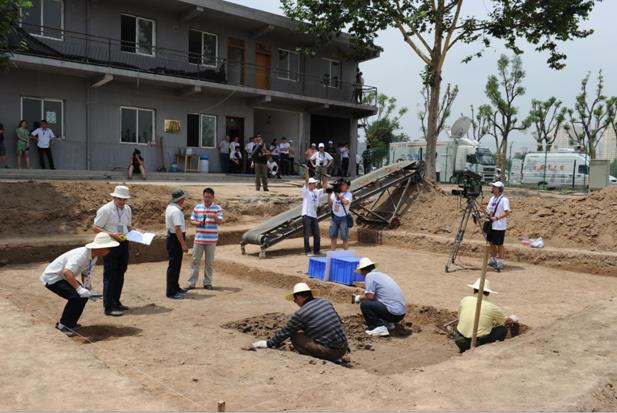 在唐大明宮官署遺址考古現(xiàn)場(chǎng)接受CCTV的采訪和直播(2011年)