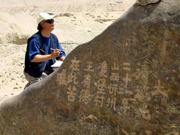 在新疆和田白玉河考察