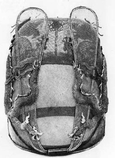 翼善冠為皇帝常服時所戴,定陵共出土3頂,形制相同,只是質料不同,一頂為金翼善冠,兩頂為烏紗翼善冠,其中一頂戴在萬歷帝頭上。金翼善冠全部用金絲編結而成,通高24、冠口徑20.5厘米。由前屋、后山(分前后兩片)、角三部分組成。后山飾雙龍戲珠。金冠的制作采用掐絲、累絲、碼絲、焊接等多種工藝,是明代金銀制作工藝最高水平的杰作,也是迄今為止我國現存唯一的帝王金冠。萬歷帝頭戴的烏紗翼善冠,后山前面嵌二龍戲珠,龍身用金壘絲編結而成,并鑲嵌有各色寶石。金色龍身搭配黑色紗面,極富動感。
