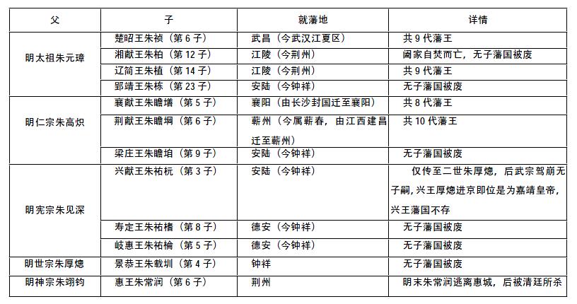 明朝初年,明太祖朱元璋秉承“藩屏王室”,洪武二年,制定封建諸王國(guó)邑及官屬之制,分封宗室,初步建立起明代的諸王分封制度,洪武一朝,先后有24位皇子分封諸地。此后,分封同姓諸侯成為明代定制。據(jù)統(tǒng)計(jì),明朝自太祖至神宗共有37位皇子開(kāi)府京外,其中31人皆傳之子孫,加上襲封諸王,明朝共有藩王266位,其中湖北和江西兩省是分布較集中的兩個(gè)地區(qū)。