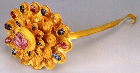 鑲寶石火焰紋金頂簪