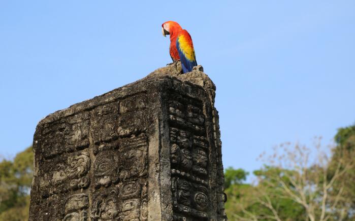 烈日下,他們汗流浹背地進(jìn)行田野工作,美味的玉米餅、醇厚的咖啡、新鮮的可可為短暫的歇息平添了好滋味,佇立在廢墟上的金剛鸚鵡、夜幕中的科潘小鎮(zhèn)更是定格在記憶里最美的畫面。赤色的夕陽(yáng),劃過叢林,消失于遙遠(yuǎn)的天際線。千里之外、千年以上的探索,遠(yuǎn)未結(jié)束。