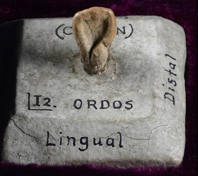 受此鼓舞,桑志華萌生了在中國(guó)北方尋找舊石器時(shí)代人類化石的念頭。當(dāng)他得知在內(nèi)蒙古鄂爾多斯沙漠南緣的薩拉烏蘇河流域發(fā)現(xiàn)大量哺乳動(dòng)物化石的消息后,便來(lái)到此地,輾轉(zhuǎn)奔波,風(fēng)餐露宿,尋找古人類遺址,收集史前文化遺物。1922年夏,桑志華在薩拉烏蘇考察時(shí)采集到一批羚羊牙齒化石和鴕鳥(niǎo)蛋片。次年,剛剛來(lái)華的法國(guó)著名古生物學(xué)家德日進(jìn)在北疆博物院整理這些標(biāo)本時(shí),意外從中發(fā)現(xiàn)了一顆小小的門齒化石,經(jīng)北京協(xié)和醫(yī)學(xué)院加拿大解剖學(xué)家步達(dá)生鑒定,確認(rèn)屬于人類,定名為Ordos Tooth(鄂爾多斯牙齒),后被裴文中先生稱為“河套人”。這是在中國(guó)境內(nèi)首次發(fā)現(xiàn)的古人類化石,中國(guó)的古人類學(xué)研究就此起步。