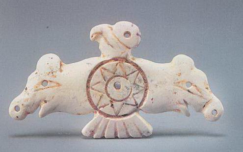 安徽含山凌家灘出土玉鷹,同樣有八角圖案