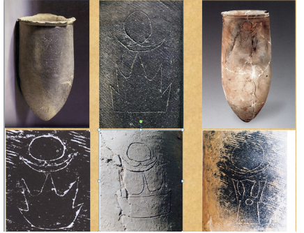 在講座中,馮時舉的第二個例子是來自良渚等地出土文物上的圖像。這些圖像像一個斗魁,中間有突起,這在東部的新石器文化遺存中大量出現(xiàn)。