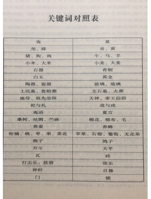 易華認為,早在4000年以前,夷文化在東亞就已經(jīng)發(fā)展到很高的水平,有發(fā)達的農(nóng)業(yè),像凌家灘的玉器等等,工藝達到了世界領先的高度;但是到了4000年前左右,夏代開始的時候有了很大的變化,進入青銅時代,東亞文化從相對比較獨立自由的發(fā)展,到遭受外來文化很大的影響,而這種影響是成系統(tǒng)的,并非偶然的小影響。易華向觀眾展示了一份夷與夏的關鍵詞對照表
