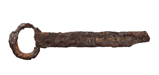 漢代在蜀地設(shè)有蜀郡和廣漢郡兩處工官,從目前的實(shí)物資料來(lái)看,金馬書(shū)刀均為廣漢郡工官所造,所用原料均為三十煉(即銘文中的“卅湅”)的鋼材。煉的數(shù)量反映出一定的工藝標(biāo)準(zhǔn),漢代工匠們對(duì)鋼反復(fù)折疊鍛打,減少夾雜物并使成分分布得更加均勻,從而得到不同煉數(shù)的優(yōu)質(zhì)鋼材,最頂級(jí)者即“百煉鋼”。作為文具,三十煉的鋼已屬“大材小用”,更兼用高超的錯(cuò)金工藝施加紋飾,無(wú)怪乎金馬書(shū)刀能夠獲得社會(huì)上層的青睞。