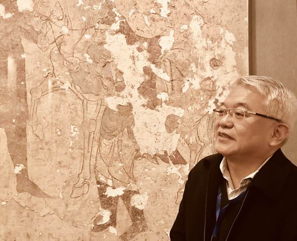 在西安曲江藝術博物館唐代胡人壁畫前,葛承雍表示在這里思考胡漢歷史問題會有身臨其境的感受。