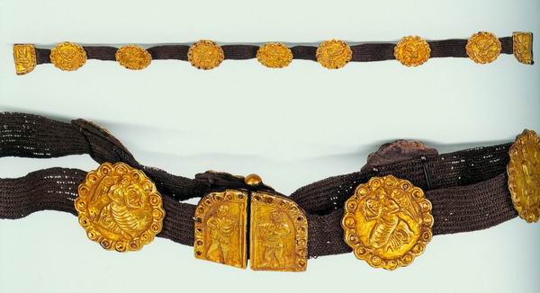青海博物館藏唐代包金西方神祗人物連珠飾牌銀腰帶
