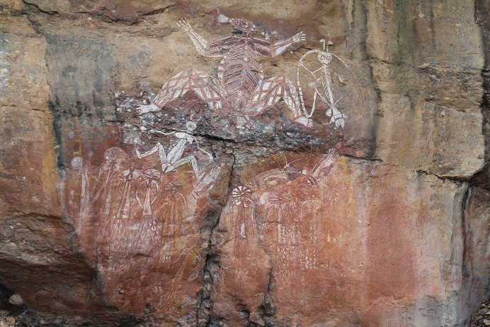 目前,卡卡杜國家公園里已發(fā)現(xiàn)的七千余處的巖畫遺址,不僅是澳大利亞最重要的文化遺產(chǎn),同時也是全球唯一一處歷史最悠久、依然活著的藝術(shù)長廊。在卡卡杜公園,人類學(xué)家和考古學(xué)家可以直接從考古學(xué)和民族學(xué)的角度研究這種人類最古老的文化遺產(chǎn)。調(diào)查時,我有幸和一位原住民管理員一起工作了一周,他告訴我?guī)r畫曾經(jīng)幾乎是每一個原住民的教科書,他們一代又一代學(xué)習(xí)著巖畫的意義、重要性和制作技法,這是世界上少數(shù)幾個仍然可以獲得這些信息的地區(qū)之一。