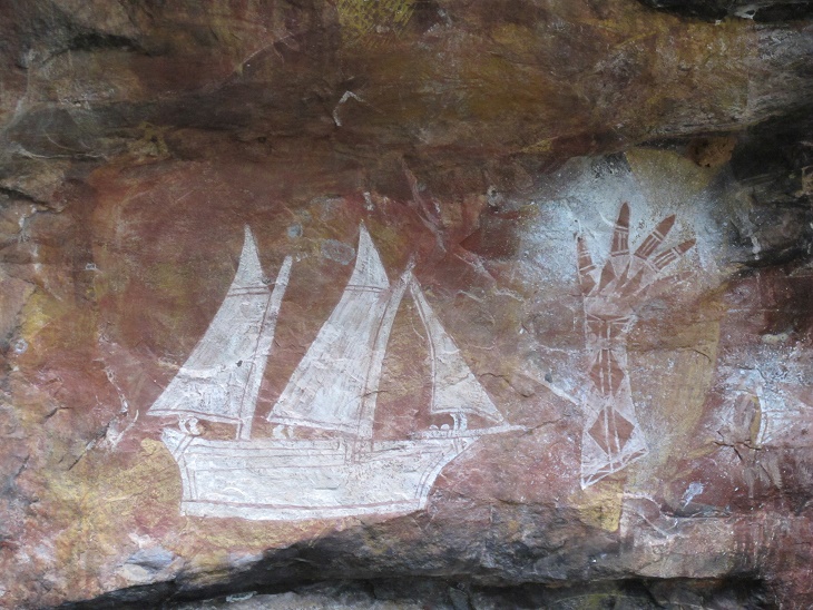 記錄了歐洲人遠洋航船的交流巖畫(唯一一幅藍色顏料)