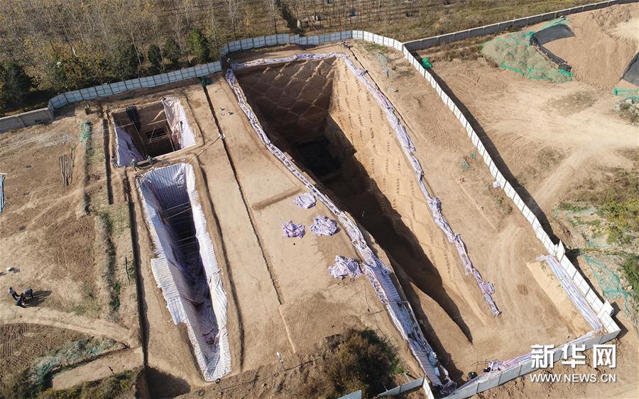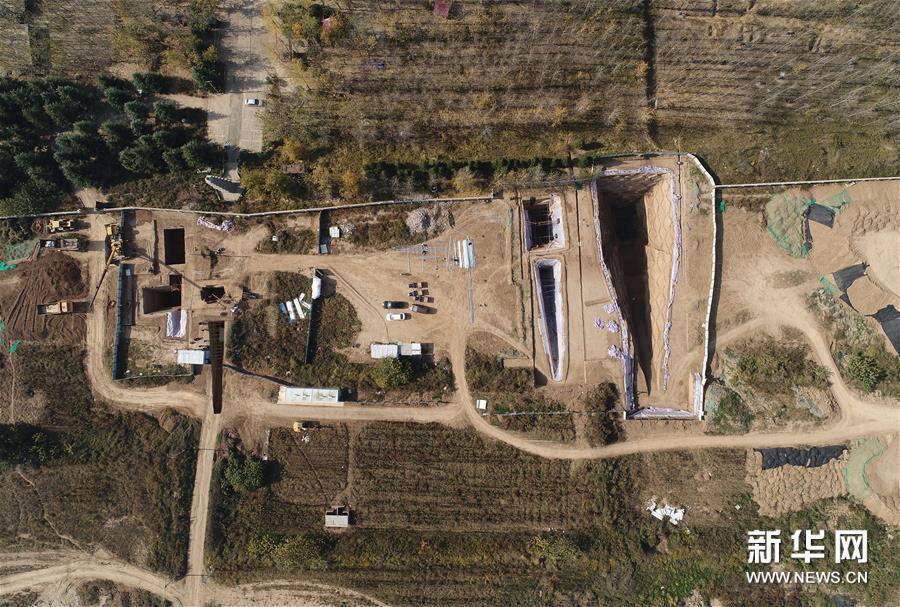 這是西安市東郊白鹿原西漢早期墓葬群的考古發(fā)掘現(xiàn)場(2018年11月2日攝,無人機照片)。新華社發(fā)