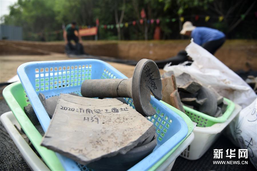 這是濟(jì)南梁王遺址內(nèi)戰(zhàn)國(guó)時(shí)期古城遺址出土的文物(7月28日攝)。新華社記者 王凱 攝