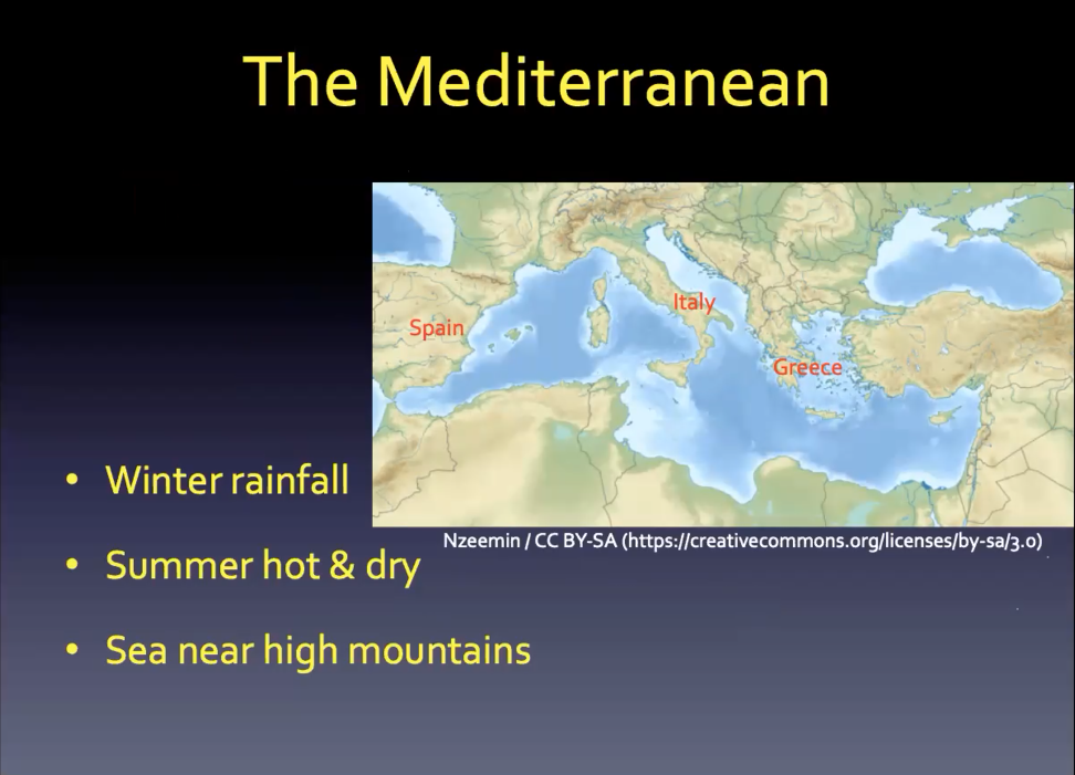 Halstead教授首先為聽眾介紹了地中海的概況。歐洲的地中海區(qū)域均屬于夏季炎熱干燥、冬季溫和多雨的地中海氣候區(qū),此區(qū)域的大部分都分布有高山和丘陵地形,而且周圍被地中海所包圍。教授的主要研究區(qū)域就是在愛琴海一帶的希臘地區(qū)。